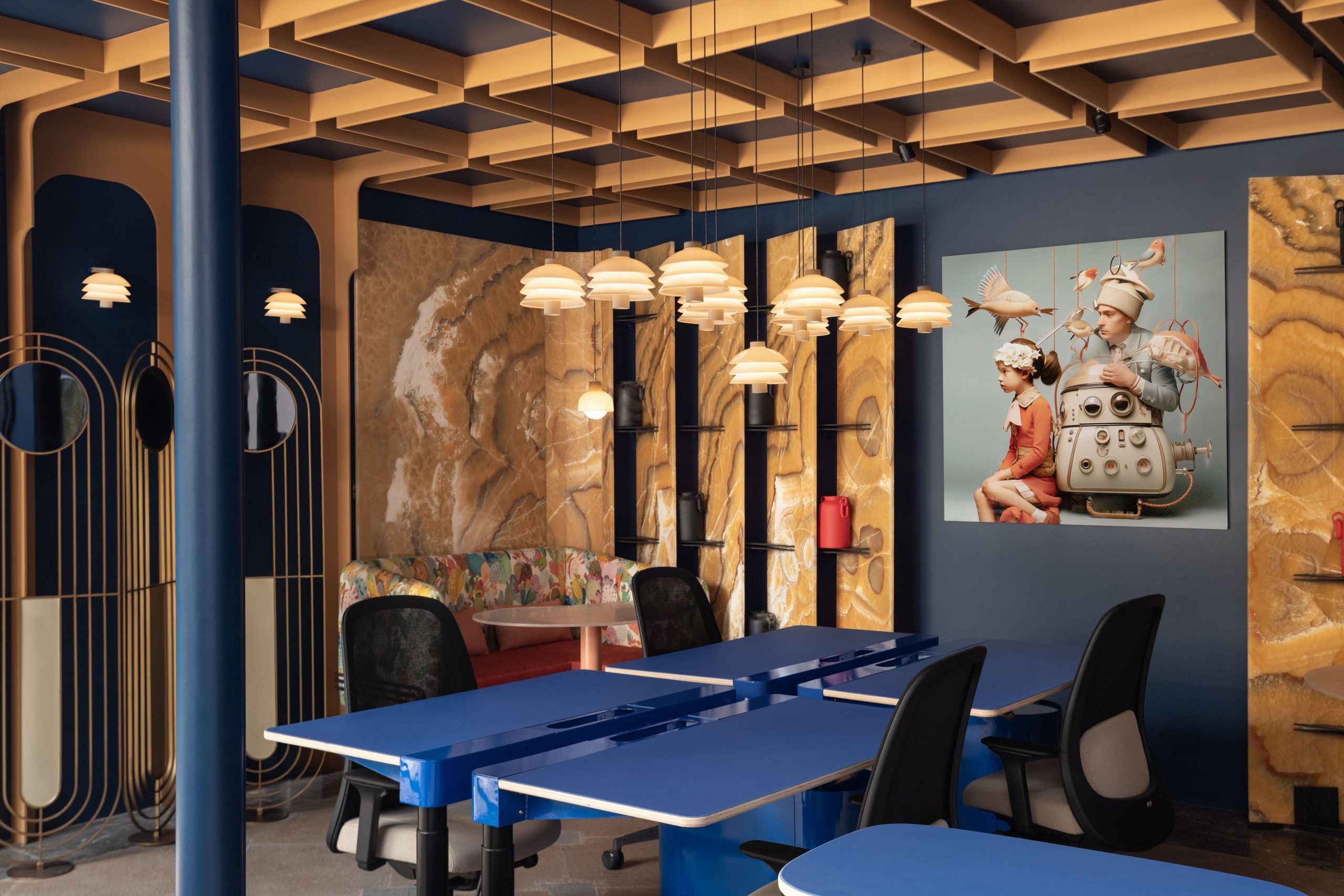 Revestido con 4,000 mosaicos de obsidiana, convierte el origen del tequila en experiencia sensorial. Un diseño íntimo y envolvente donde la piedra volcánica se vuelve identidad.
