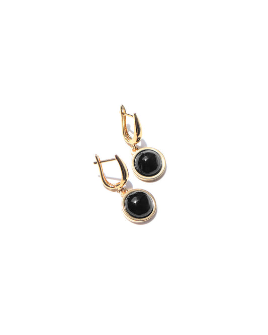 Aretes dorados medias esferas de obsidiana