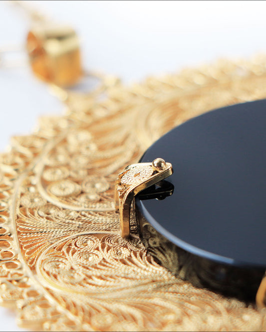 Espejo de obsidiana con filigrana chapa de oro