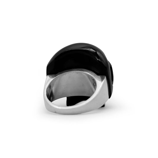 Anillo cráneo completo de obsidiana con base de plata