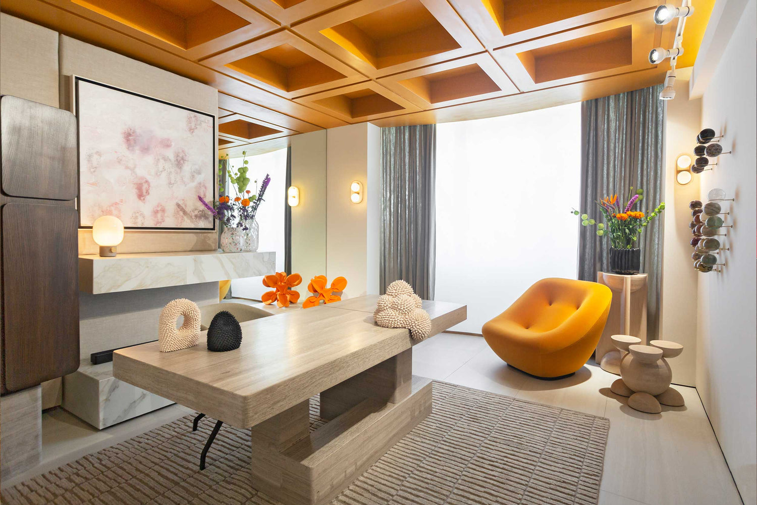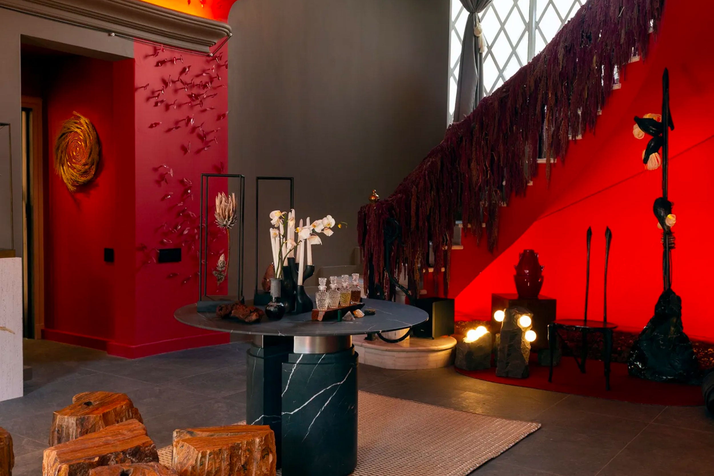 Creado para Design House 2023, The Book of Wa y HADA by House of Kirschner presentan El Salón del Trono: un vestíbulo transformado. De una forma completamente lúdica y escenográfica, los espacios de llegada y transición pueden convertirse en espacios dramáticos y memorables, más que en espacios de paz y relajación. El Salón del Trono busca convertir al vestíbulo en un recorrido multisensorial y halagador, que potencie el autoestima y el ego en su corta duración, en una atmósfera encendida y operática. Obras de arte y diseño coleccionable; aromas, experiencias florales, y naturaleza reciben e involucran al visitante de forma activa con un único objetivo: elevarlo como si se tratara del momento de una ceremonia de coronación personal.