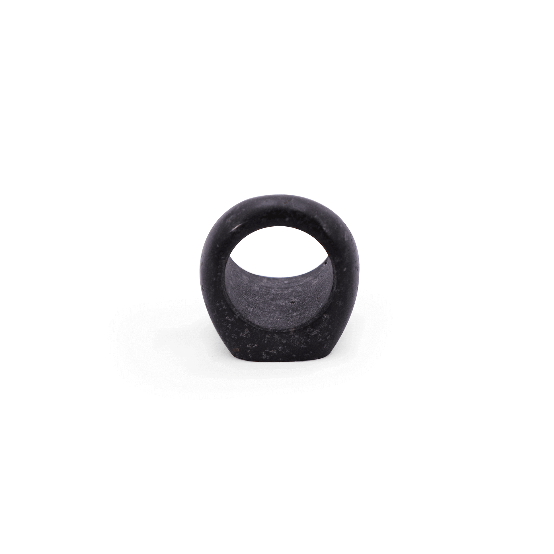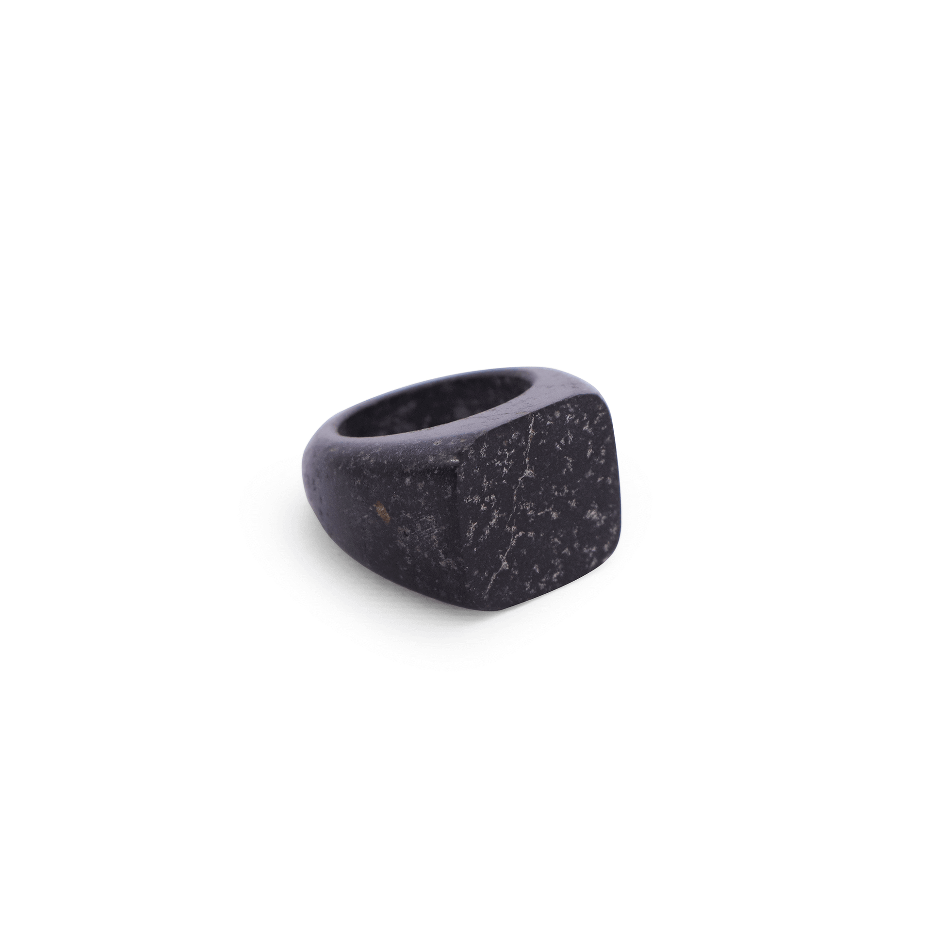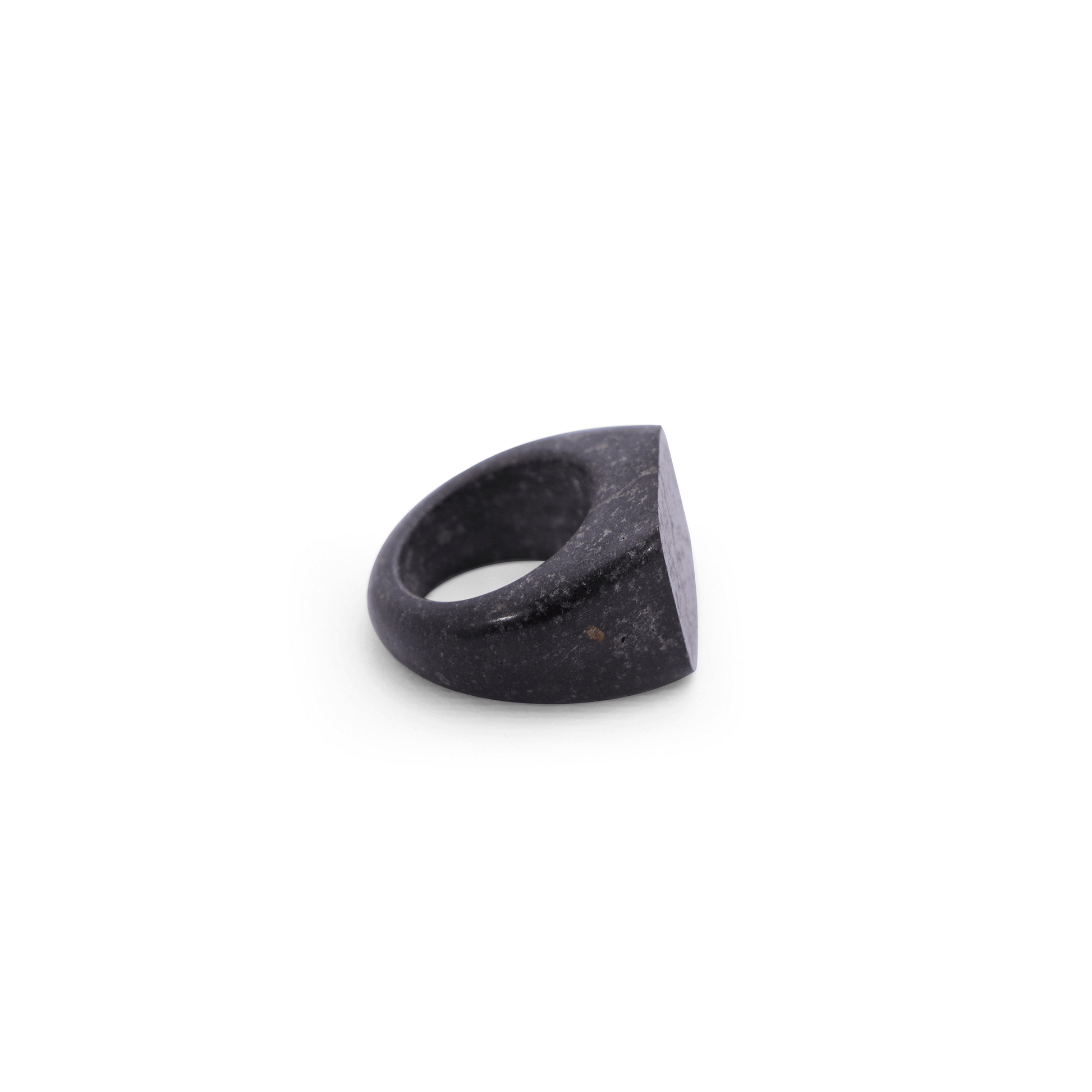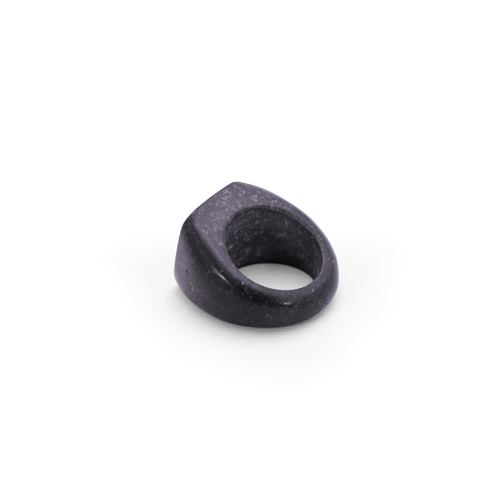 Anillo de basalto, roca volcánica de color negro verdoso.