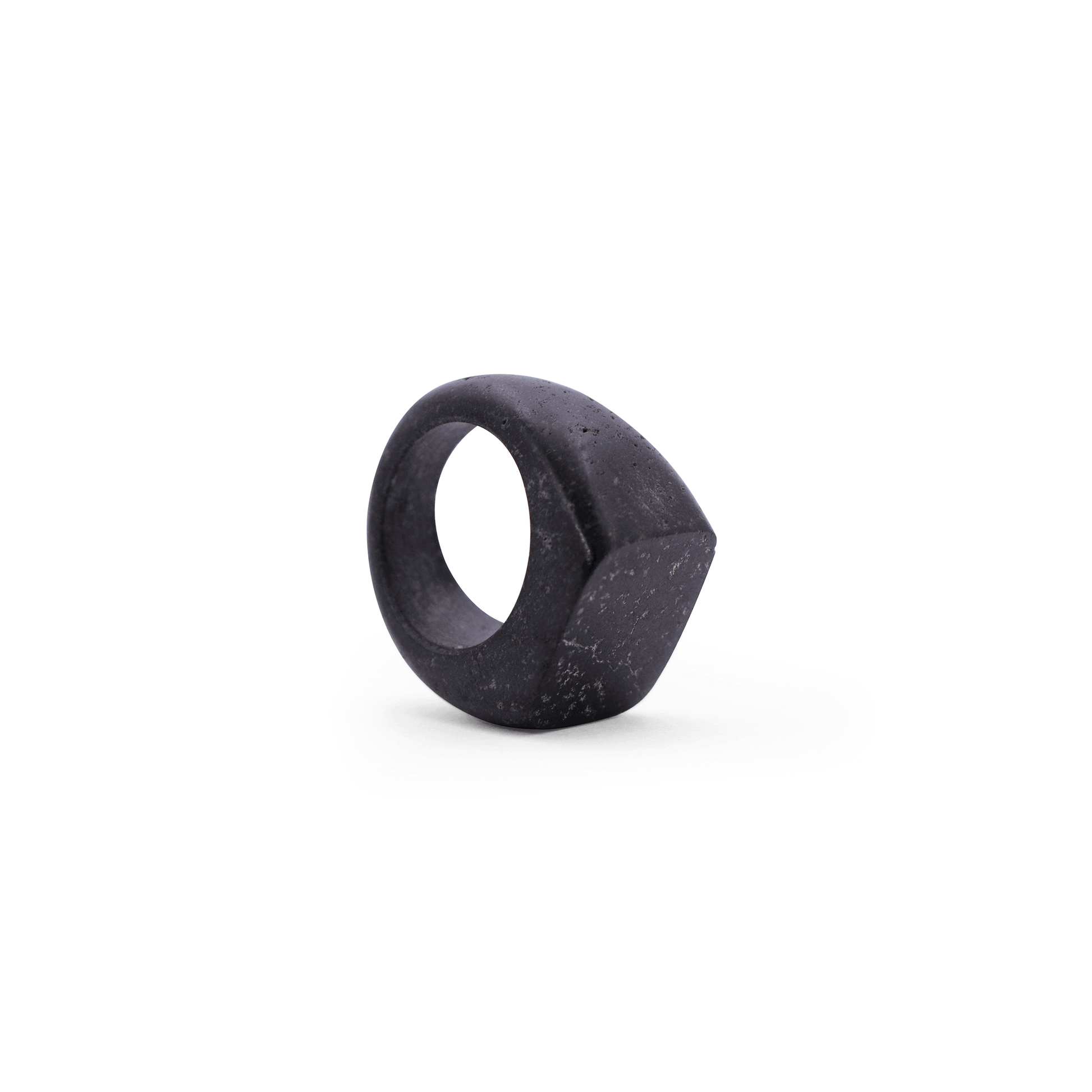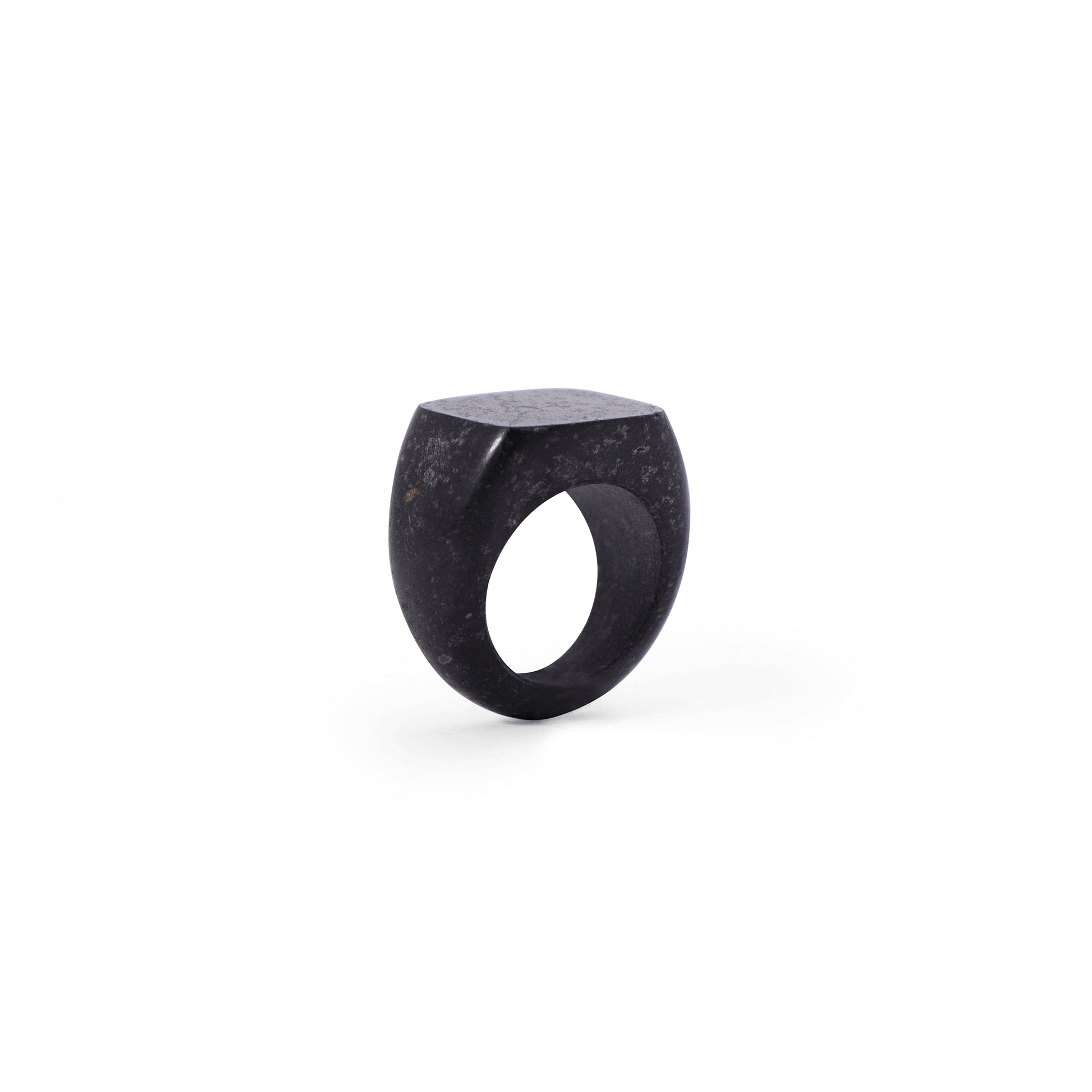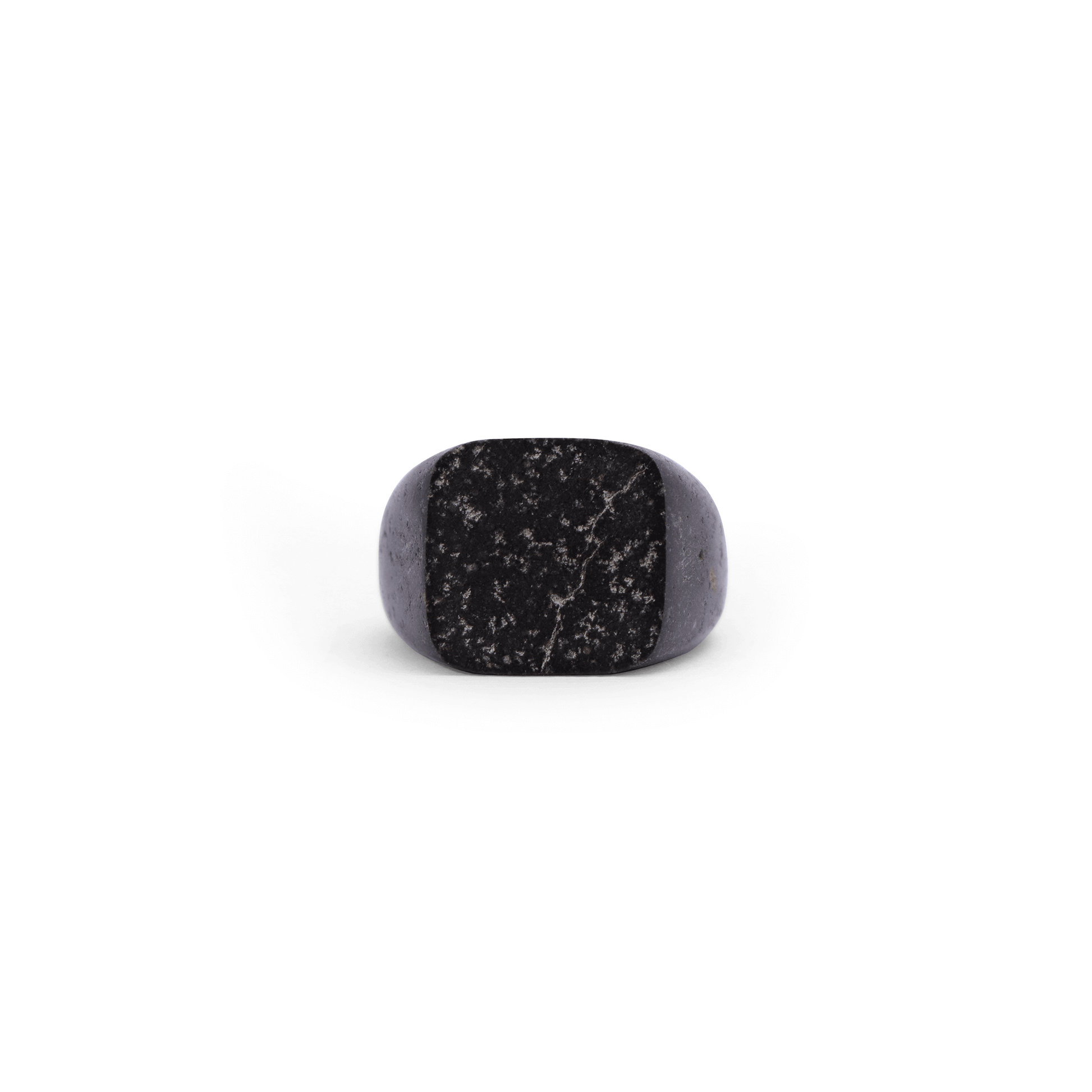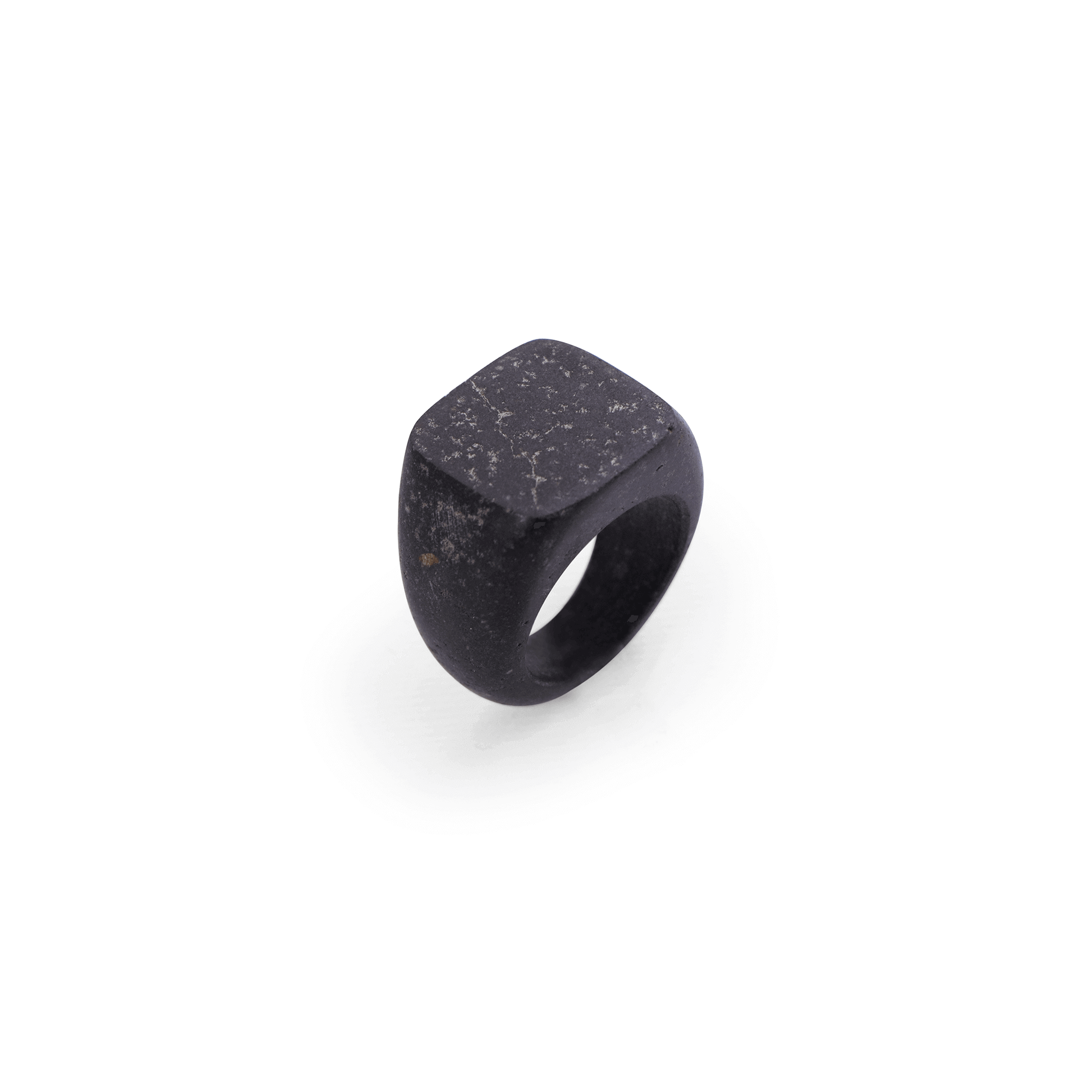 Anillo de basalto, roca volcánica de color negro verdoso.