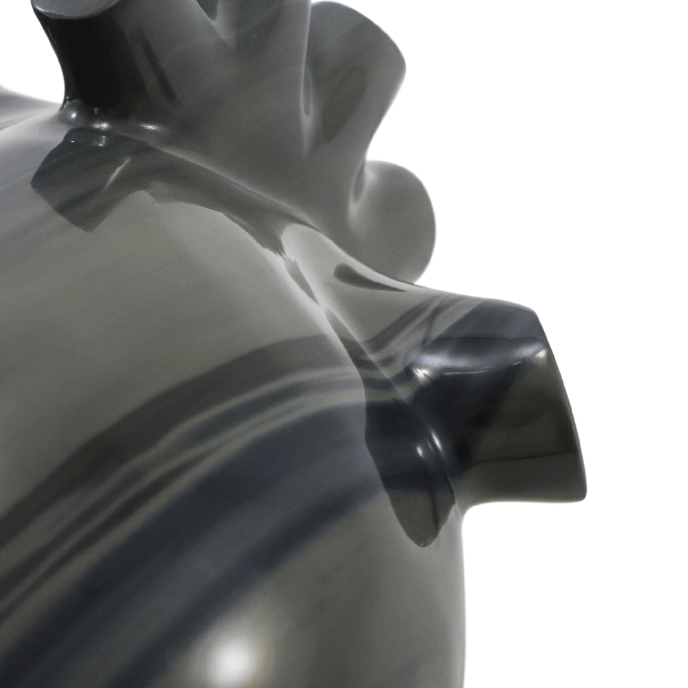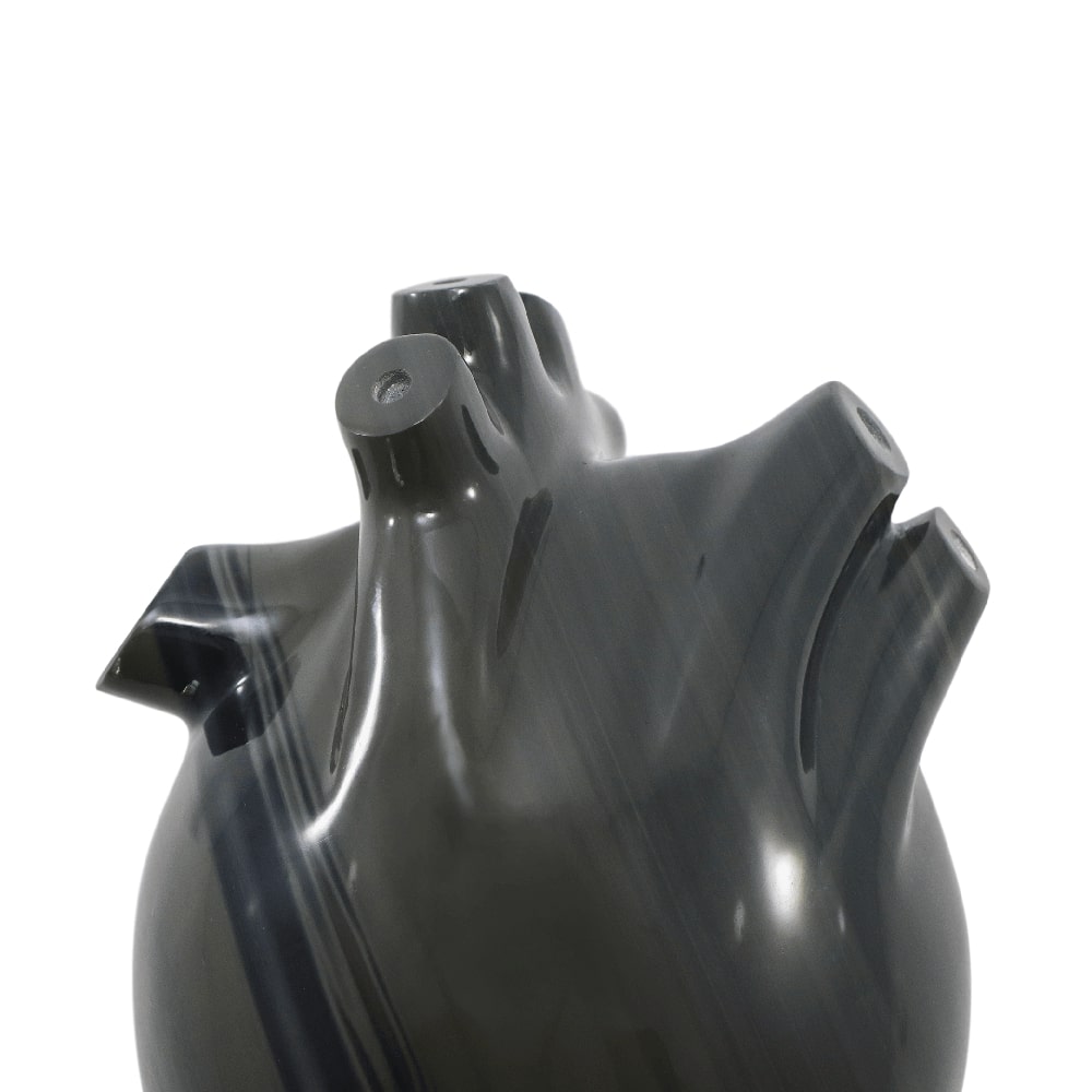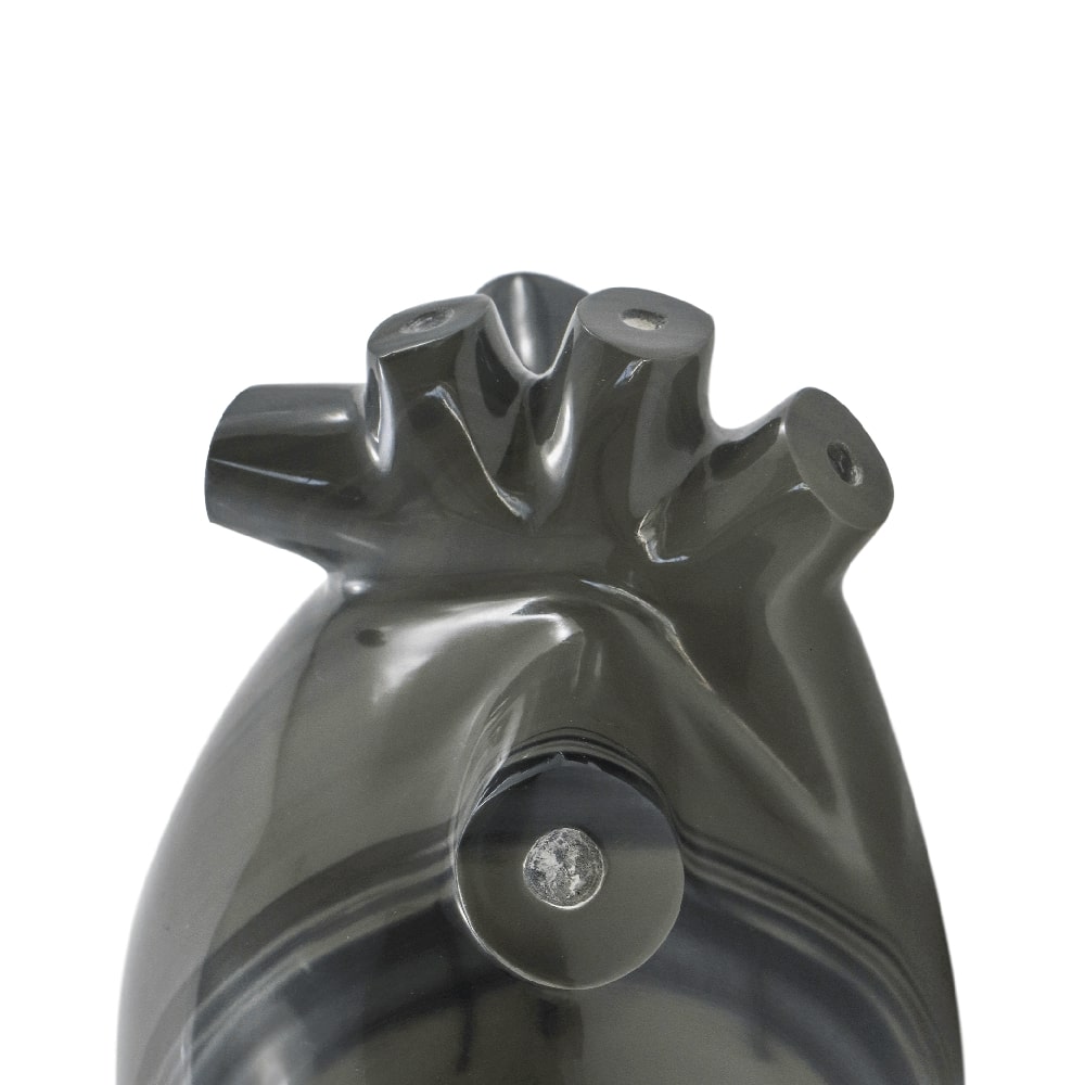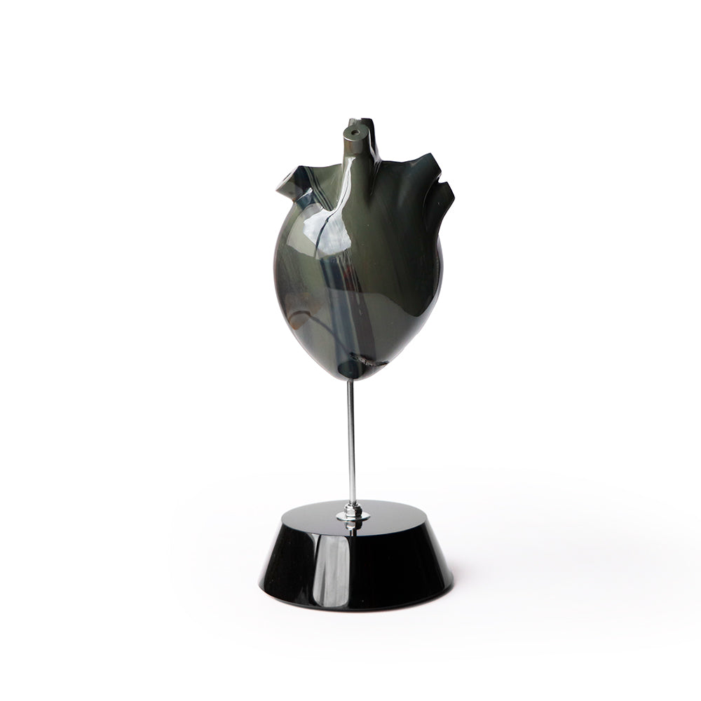 Corazón anatómico de obsidiana verde suspendido en base de obsidiana negra.