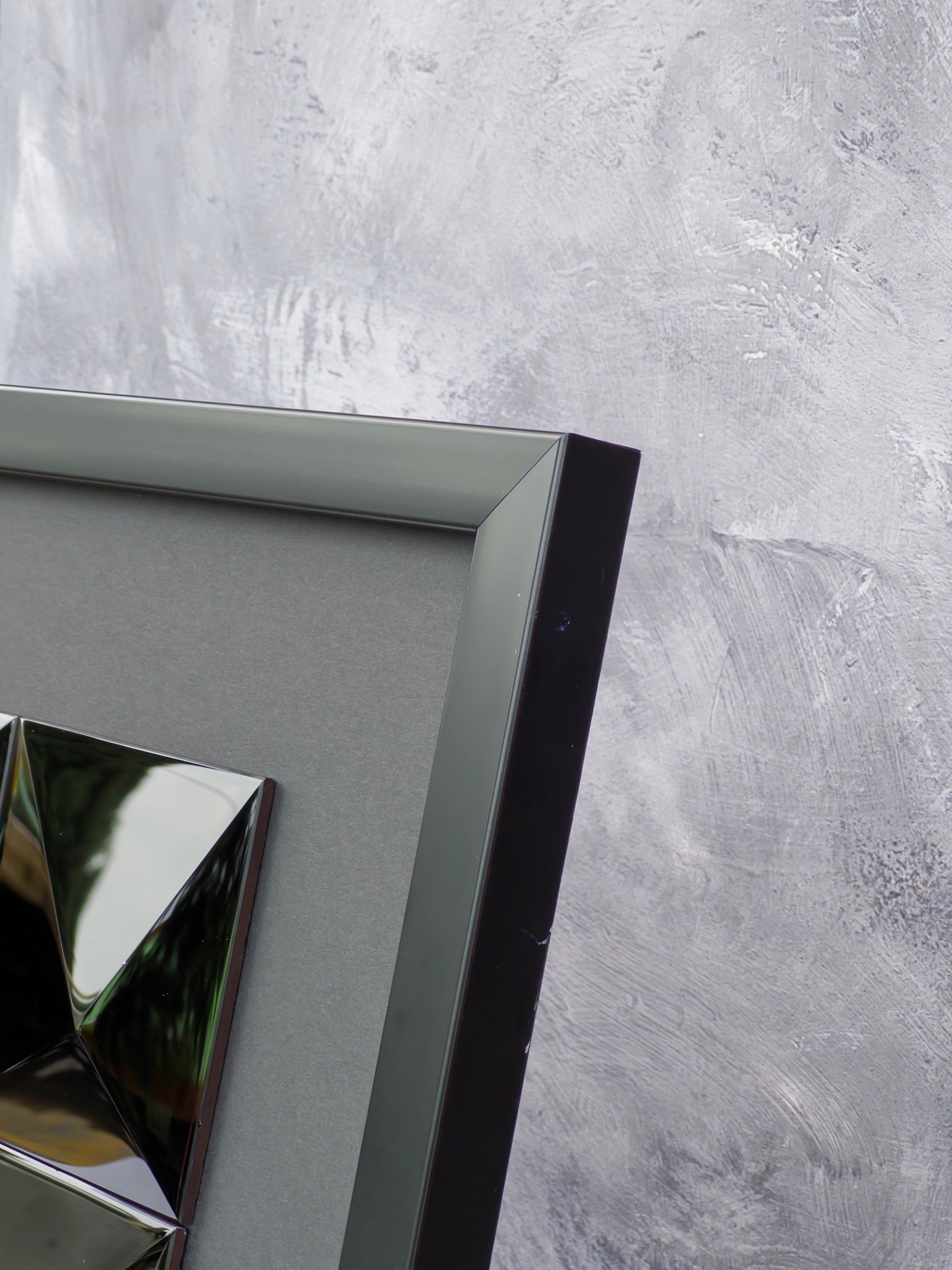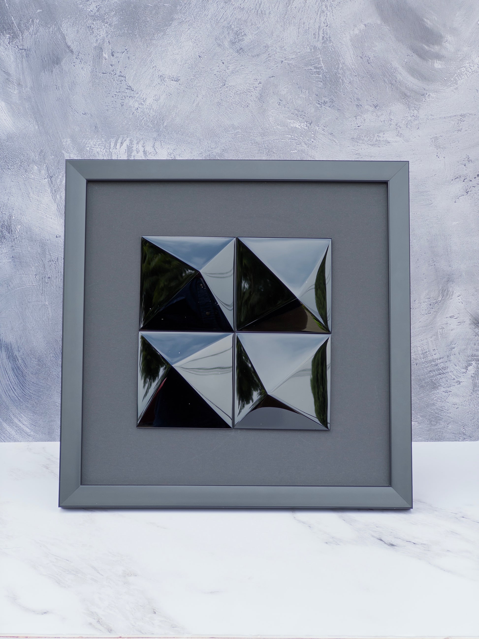 Cuadro con 4 mosaicos de obsidiana negra que simulan una ventana