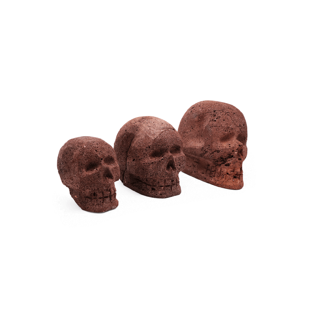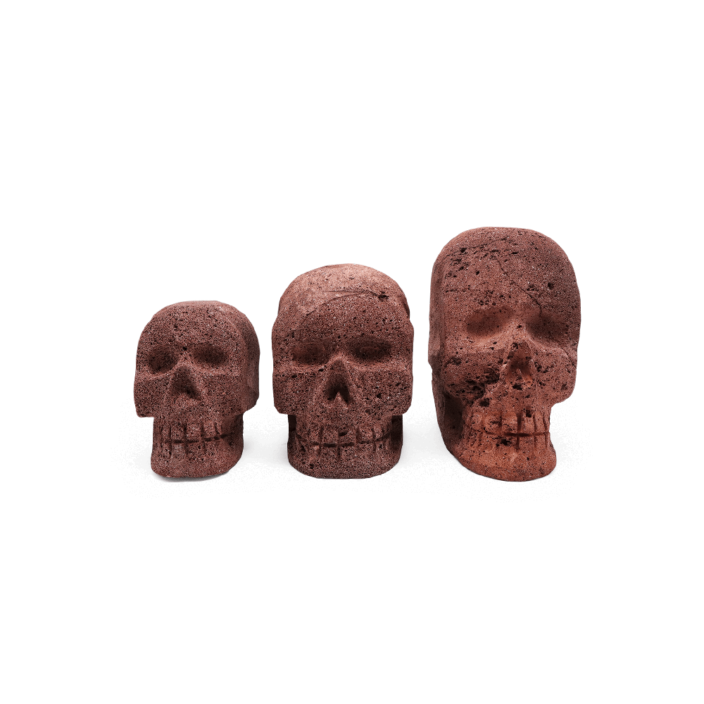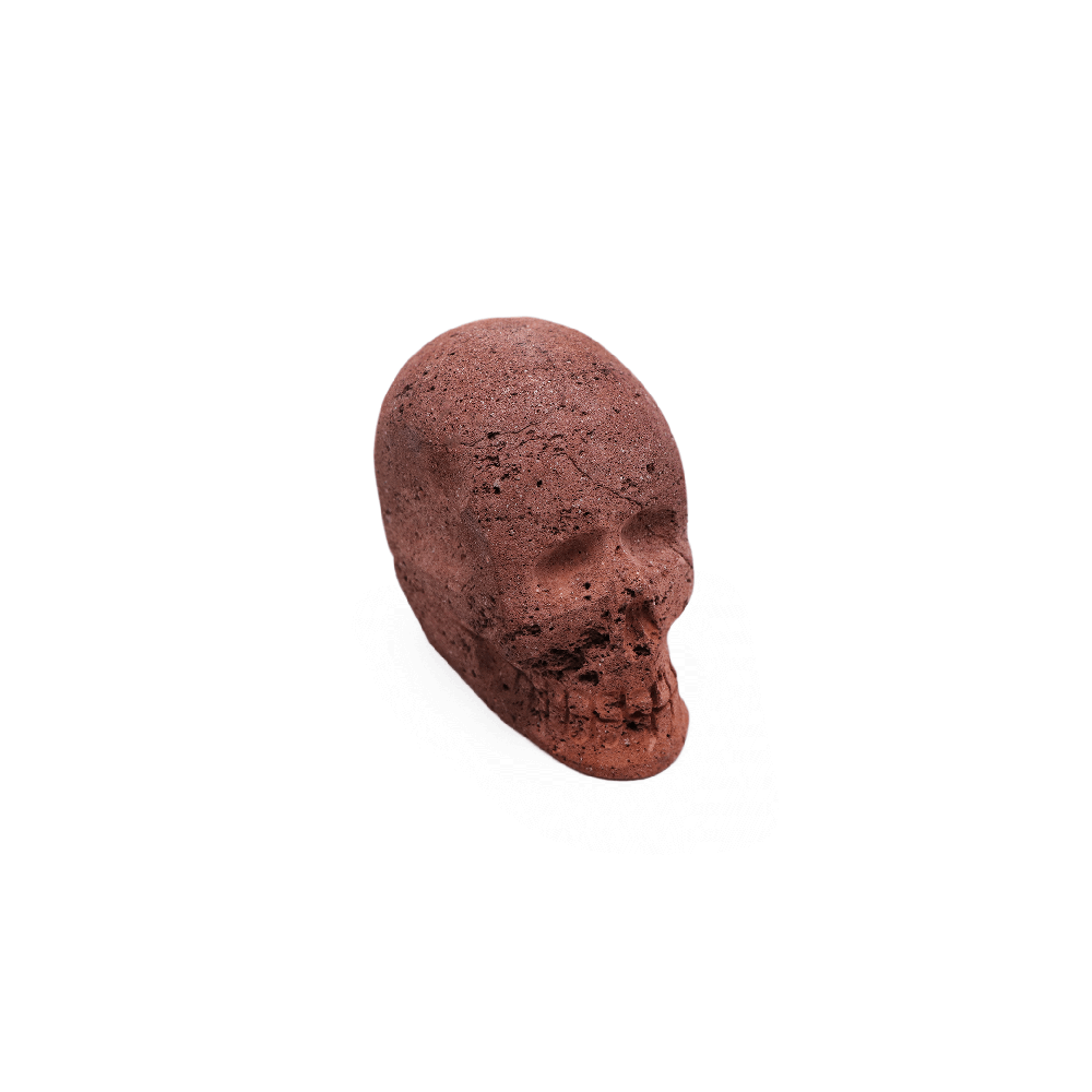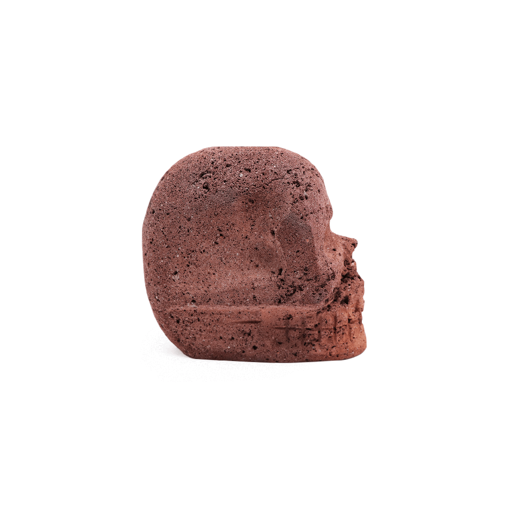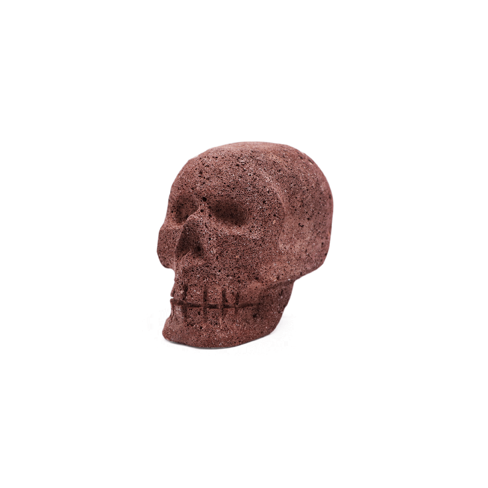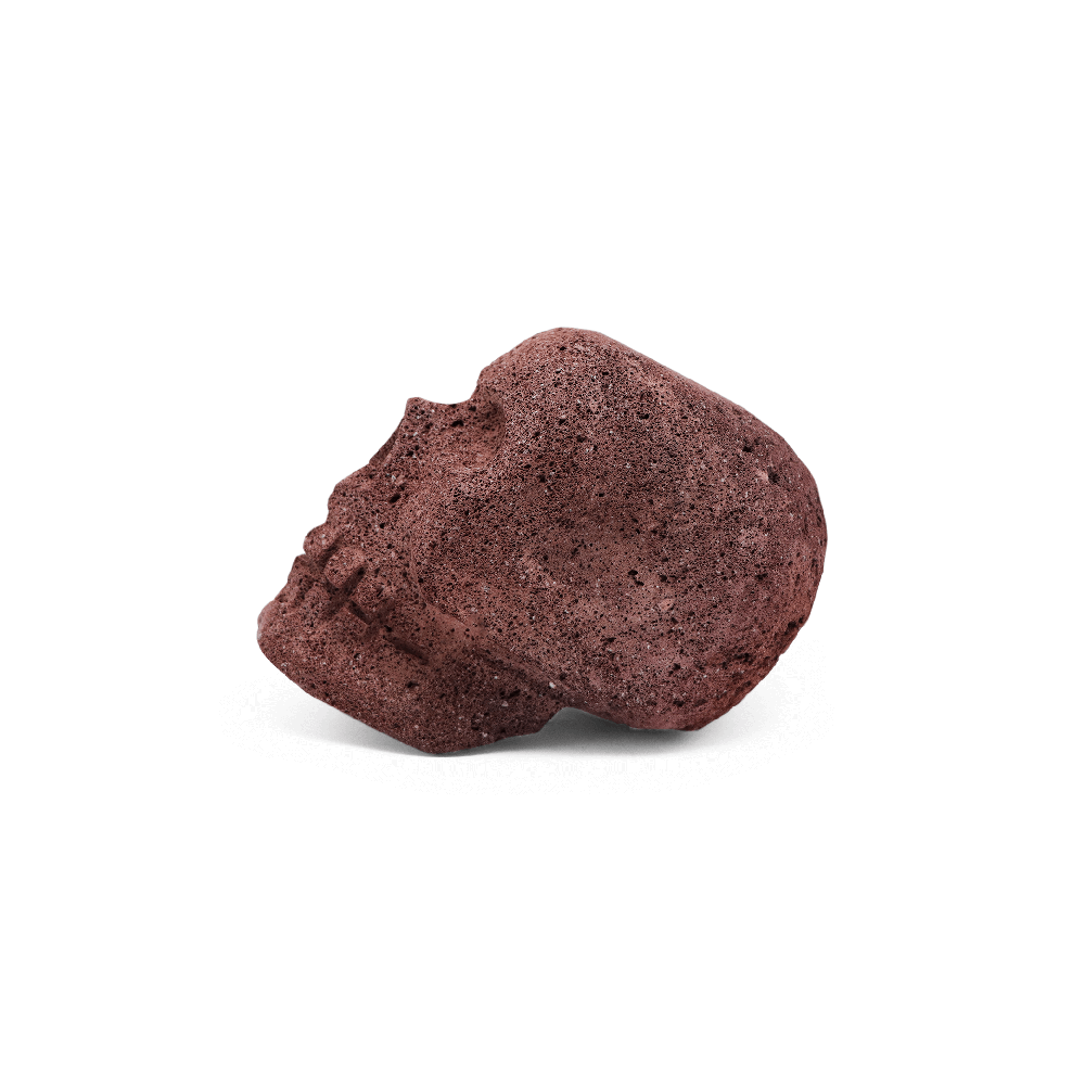 Este craneo esta hecho de tezontle, una piedra que al igual que la obsidiana es una roca de origen volcánico. En México se le puede encuentra en volcanes como el Popocatépetl e Iztaccíhuatl.