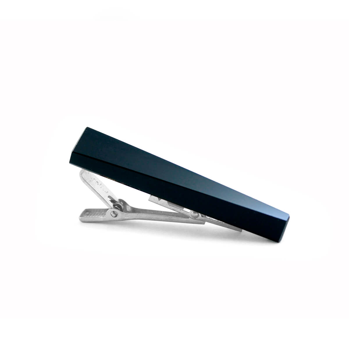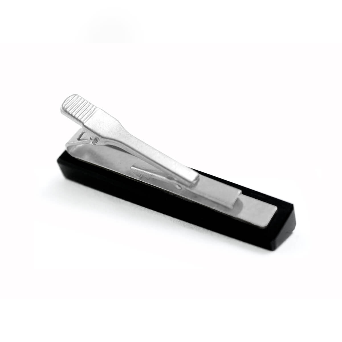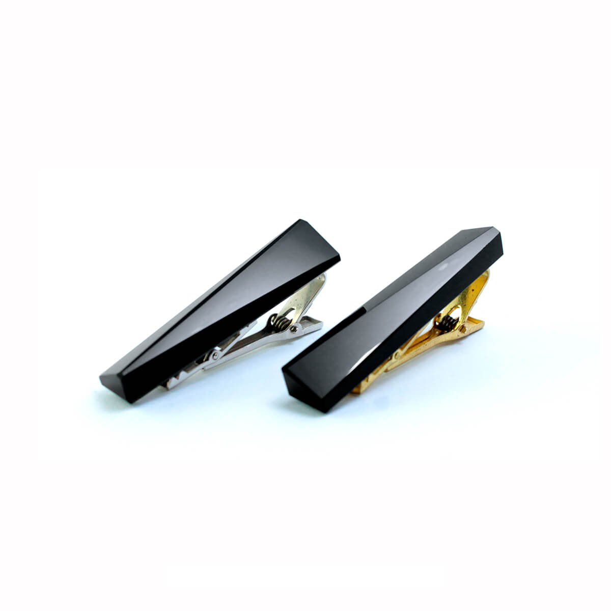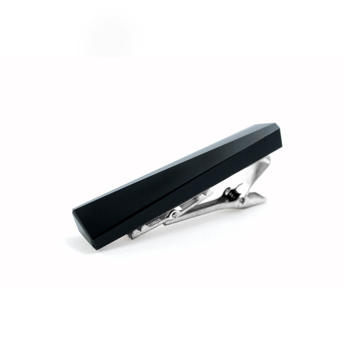 Pisacorbata de barra con dos facetas de obsidiana negra.