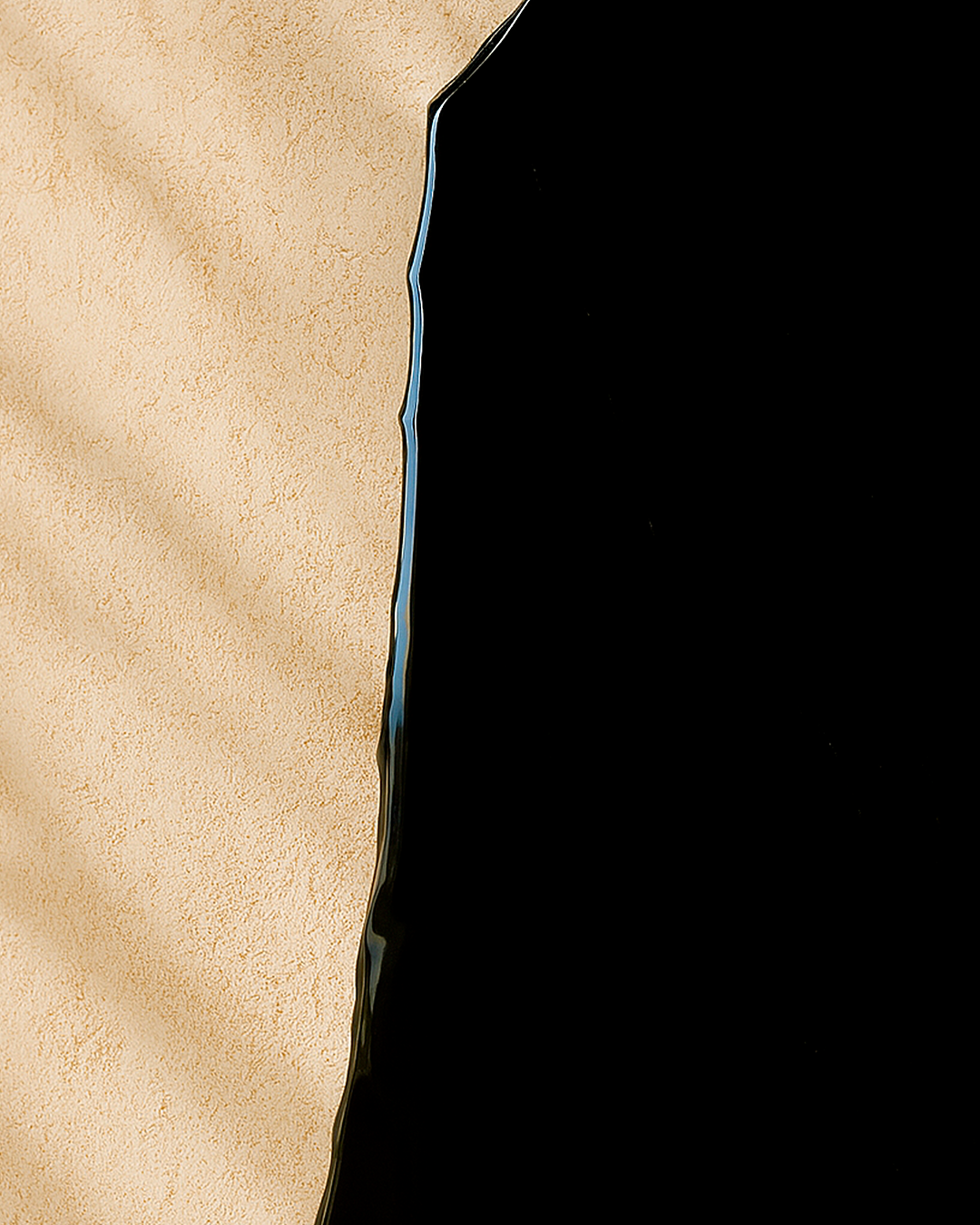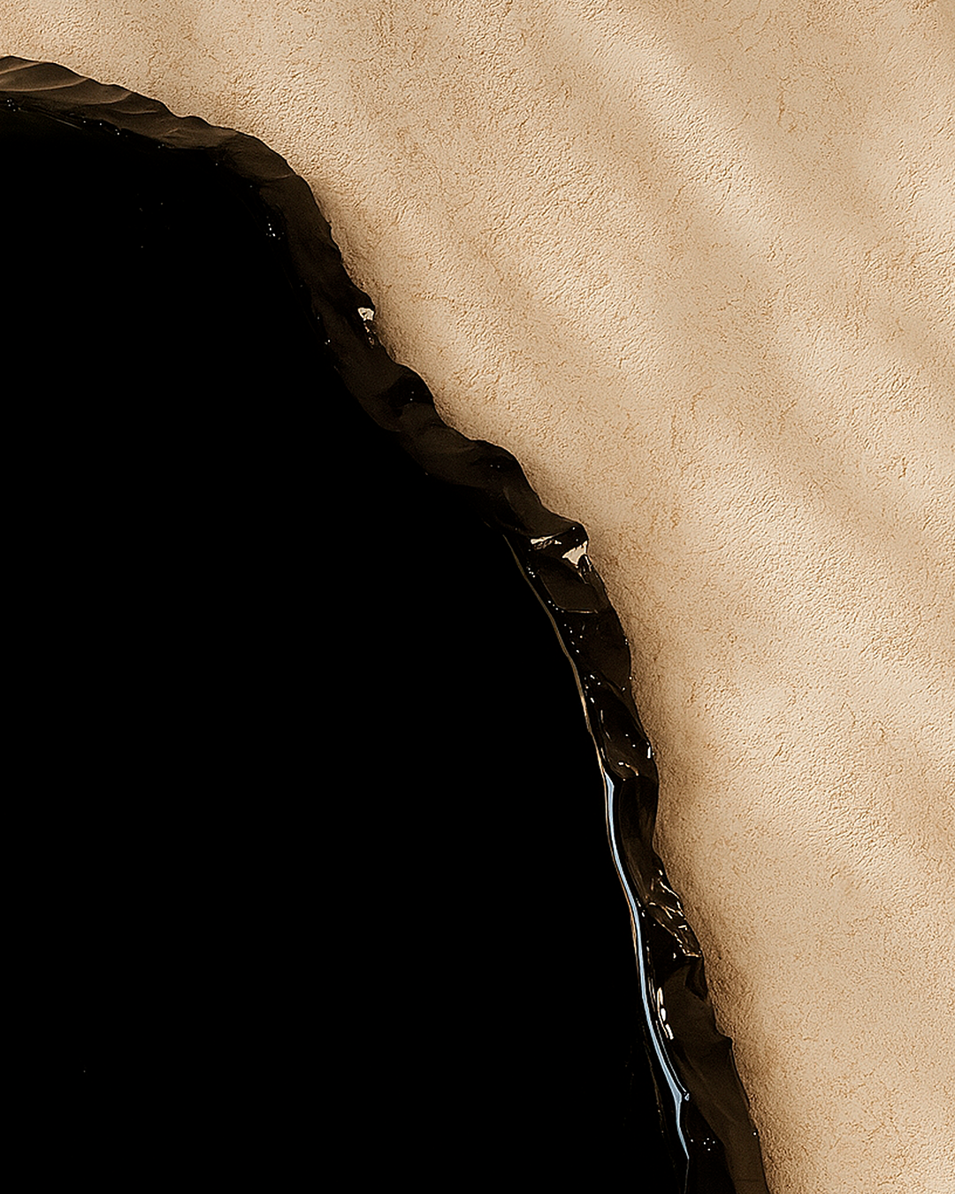 Placas de obsidiana talladas y pulidas a acabado espejo. Cada pieza conserva la forma natural de la roca, revelando su brillo profundo y único como elemento decorativo.