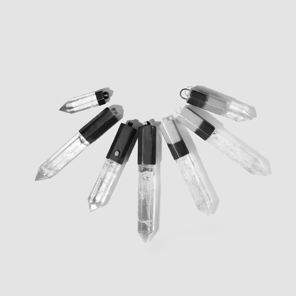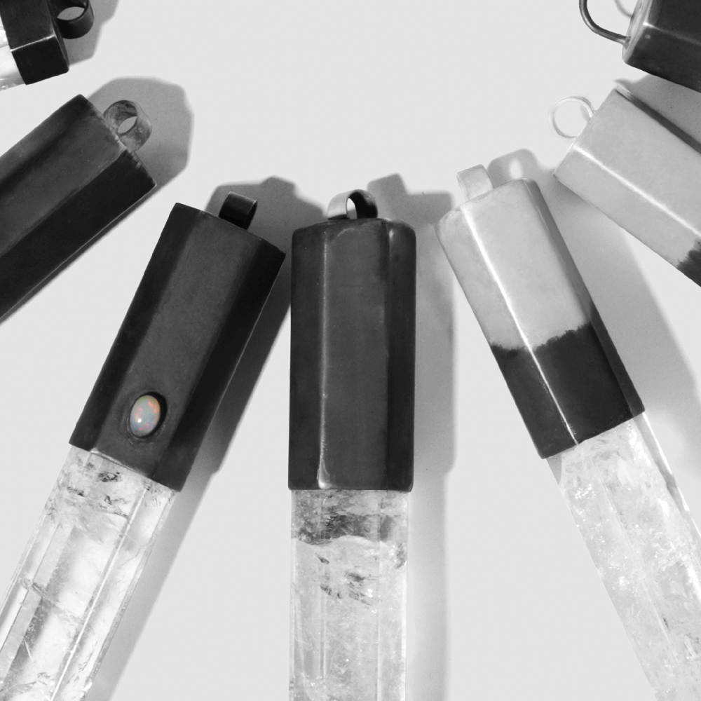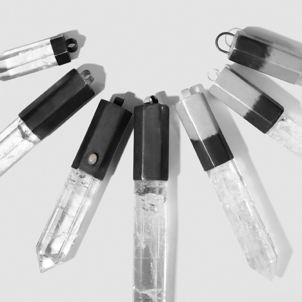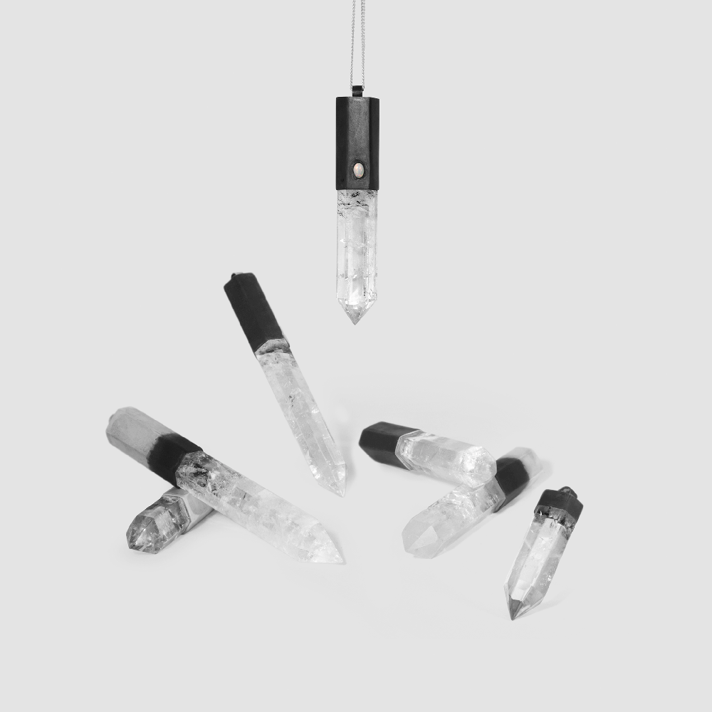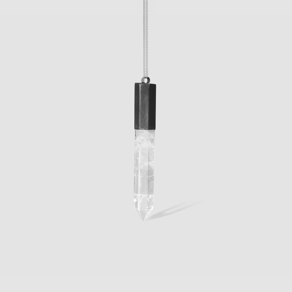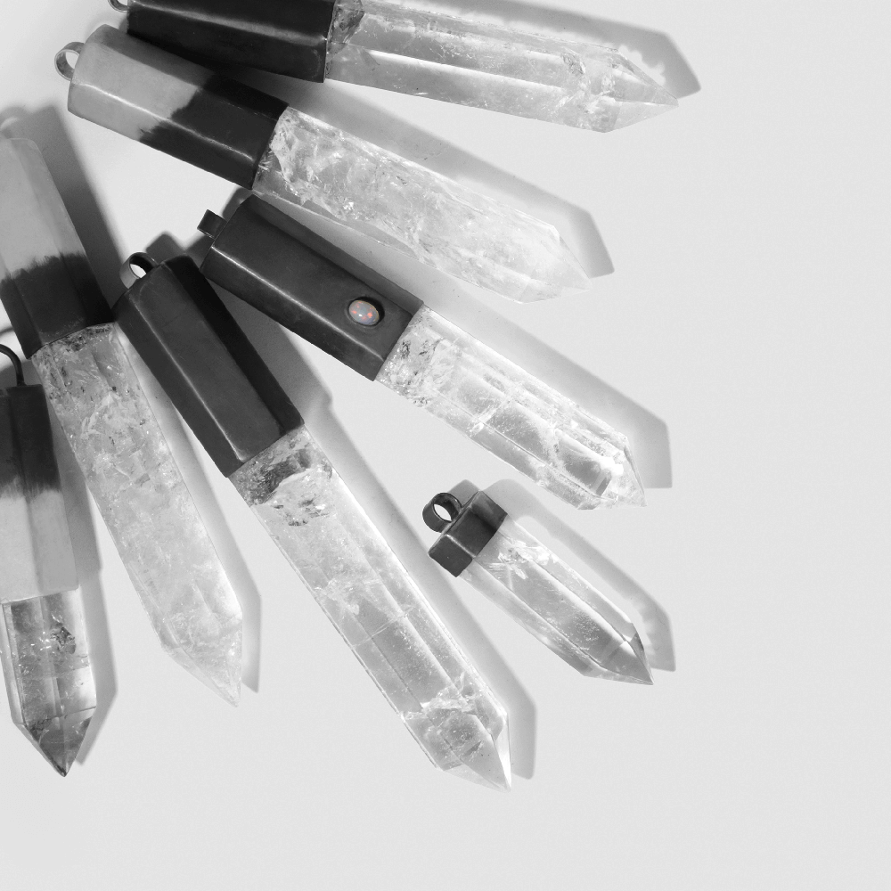 Punta de cuarzo cristal con engarce y cadena de plata 9.25, de 6cm a 14cm de largo aproximadamente.
