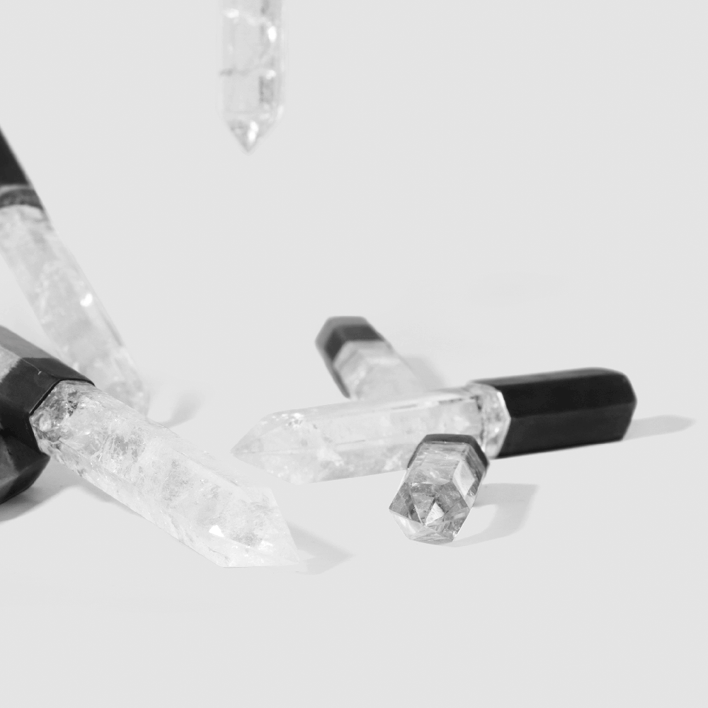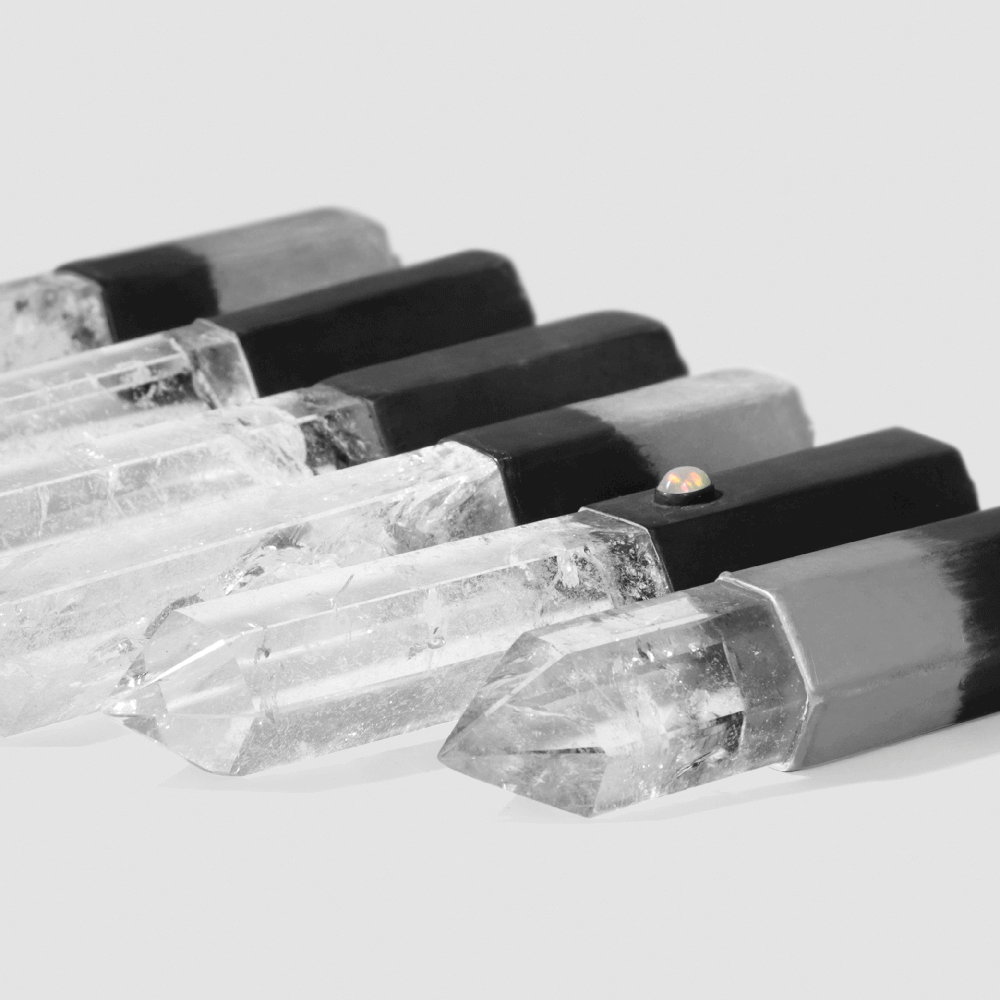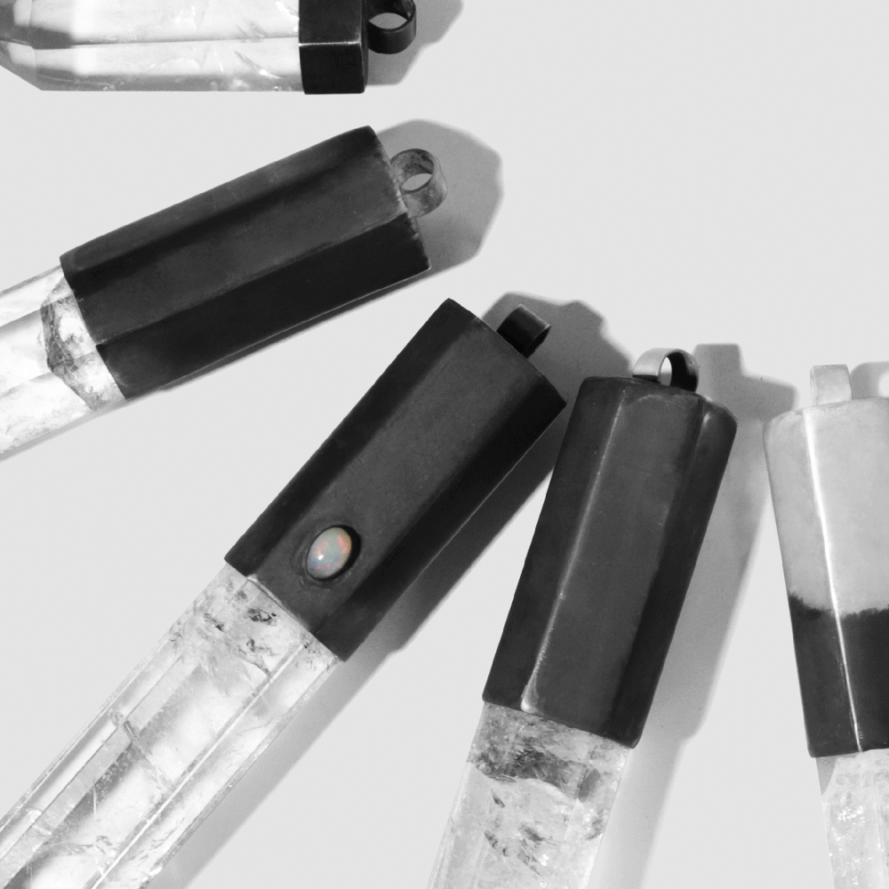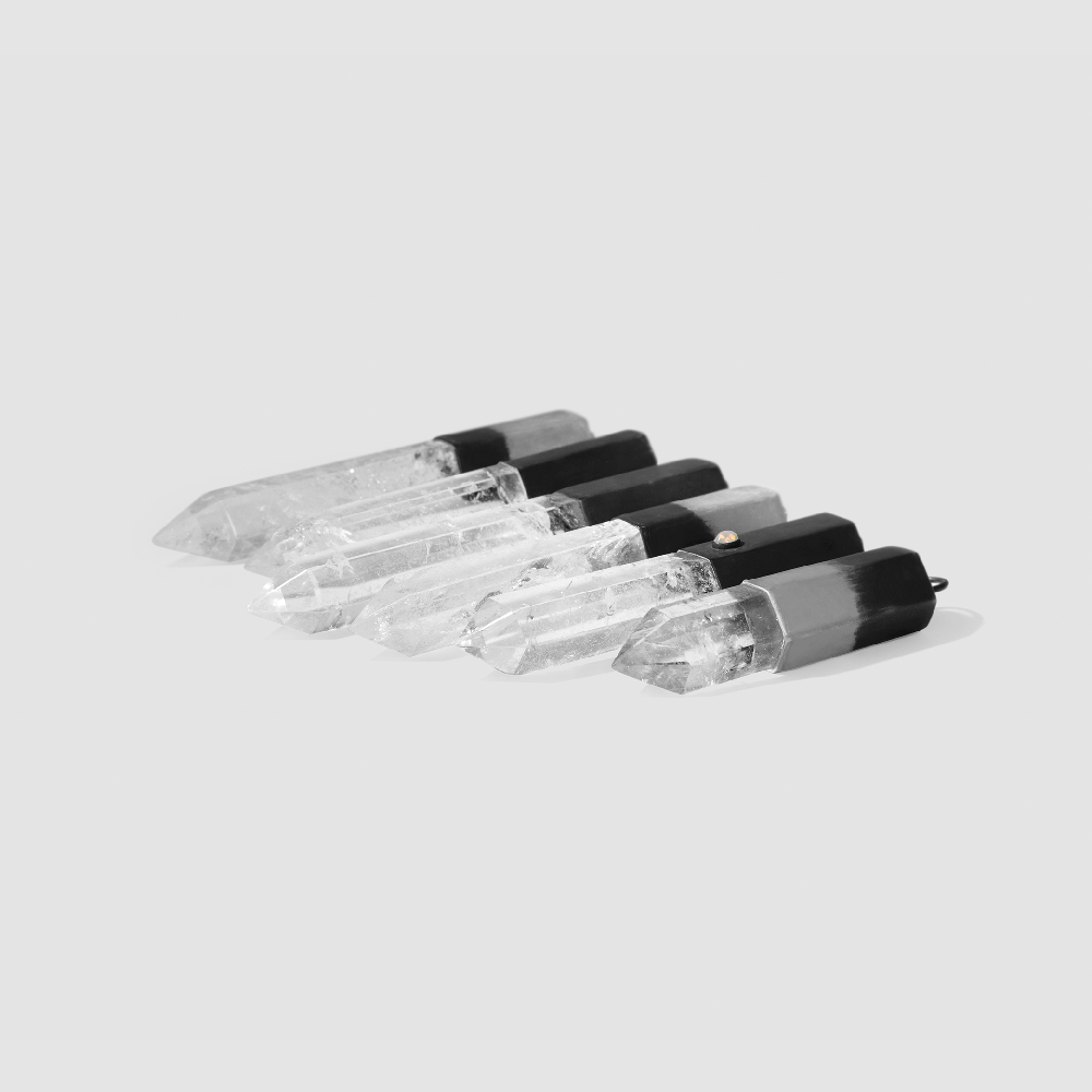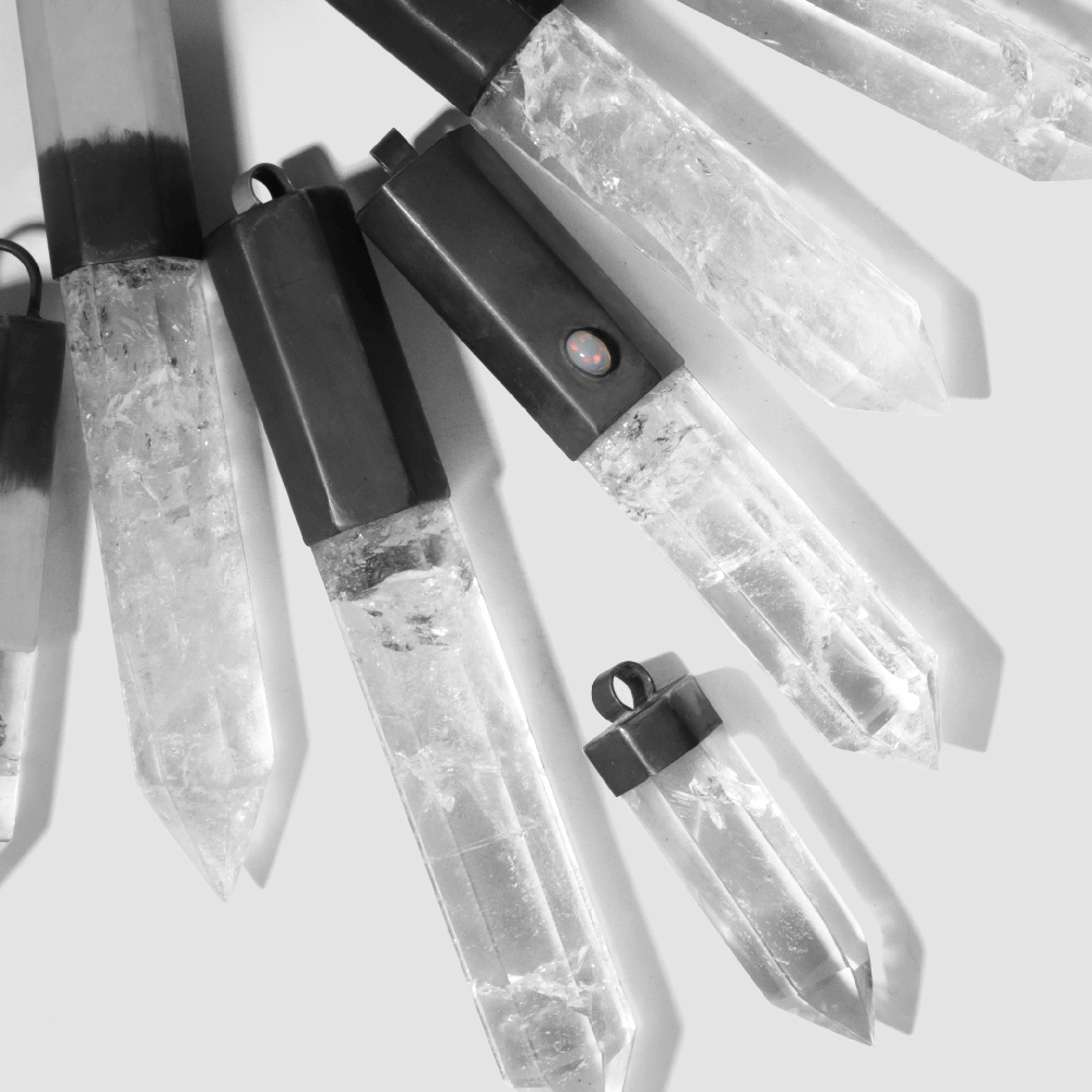 Punta de cuarzo cristal con engarce y cadena de plata 9.25, de 6cm a 14cm de largo aproximadamente.