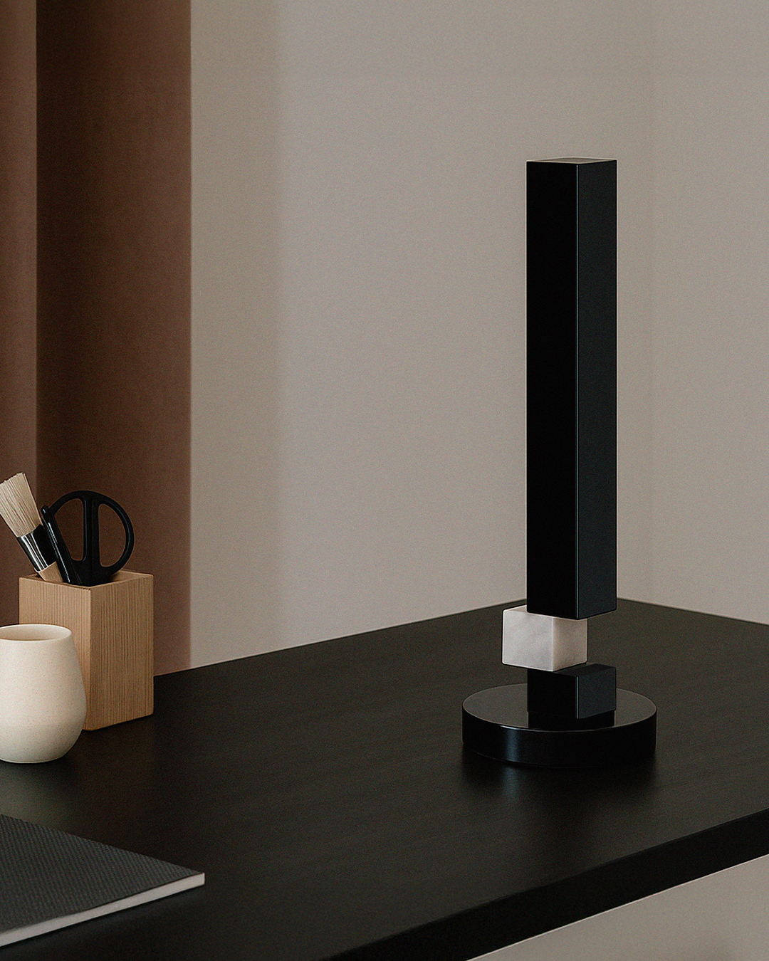 Torre de obsidiana negra con cubo de cuarzo defasado.