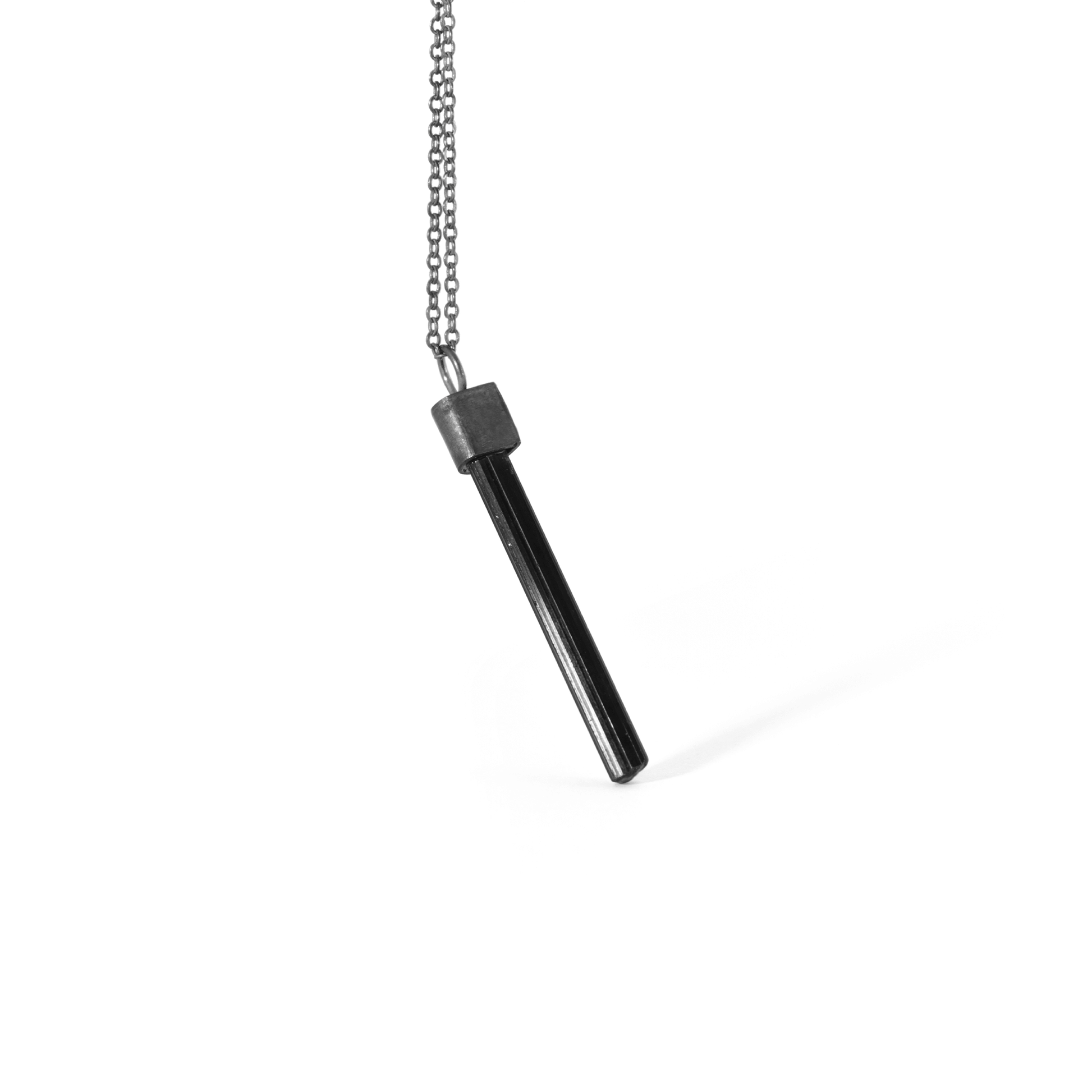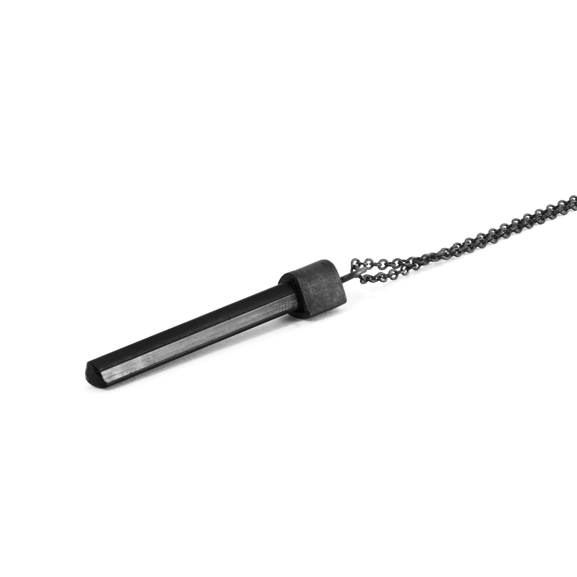 ·Dije de turmalina con plata pavonada.